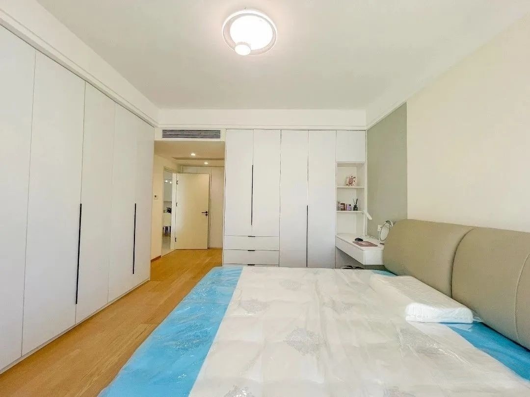 臥室整體延續(xù)了簡(jiǎn)約的風(fēng)格,兩面墻通頂大衣柜,收納功能杠杠好,靠床的衣柜,選擇做衣柜+書(shū)桌一體的設(shè)計(jì),兼具實(shí)用與設(shè)計(jì)感。