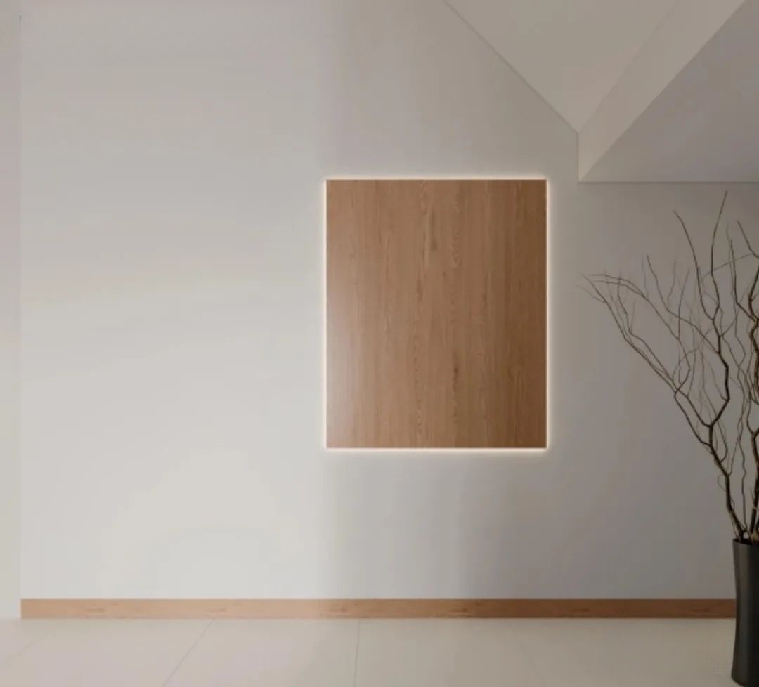 地面、護(hù)墻板都以同樣的原木色材質(zhì),灰白色的墻面+米白色布藝+暖黃色的燈光,或許不屬于一眼驚艷,卻足夠高級耐看,能抵擋住時間對審美造成的變化,永不過時。