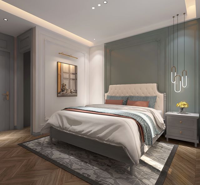 在色彩選擇上,輕法式風情裝修偏愛柔和的色調(diào),如米白、淡灰、淺藍等,這些色彩不僅能夠營造出一種寧靜、舒適的環(huán)境,還能夠與各種家具和裝飾品相得益彰,展現(xiàn)出一種低調(diào)而奢華的美感。同時,適當?shù)慕鹕蜚~色點綴,如燈具、鏡框或裝飾品,能夠增添一絲法式的浪漫與奢華感,讓空間更加精致。