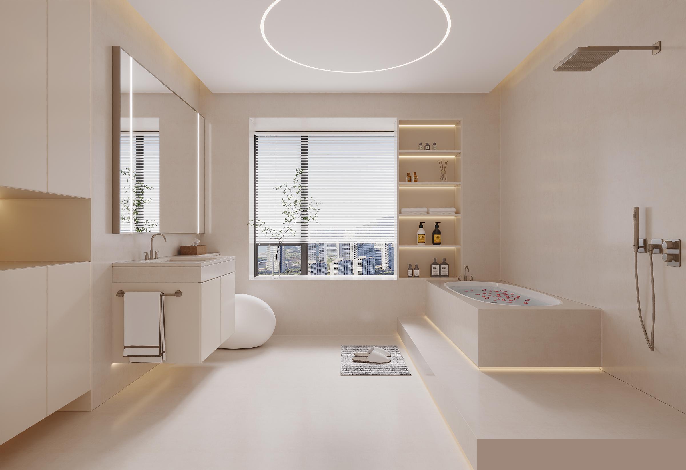 (現(xiàn)代奶油風(fēng)衛(wèi)生間裝修效果圖)